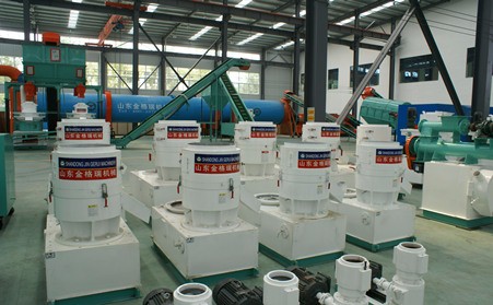 带动皮带轮传递到主轴及平模擦动压轮使压轮与模板之间有大于80℃的磨擦温度,是以机械圆运动为基础,粉料通过高温糊化凝结,在压轮的挤压下,从平模孔中挤出,经过切刀的分段,最后从下料口中滚出颗粒饲料,电动机及柴油机为动力,颗粒饲料自然冷却后才可包装。