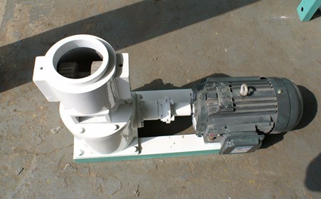 采用模板、压辊采用优质合金钢经特殊处理,饲料机主轴及平模在摩擦力作用下,带动压辊自转,压辊与模板产生高温使淀粉熟化,蛋白质变性凝固,在压辊挤压下从模孔中排出,小型饲料机颗粒经甩料盘送出机外,通过调节切刀角度可控制颗粒饲料的长短。